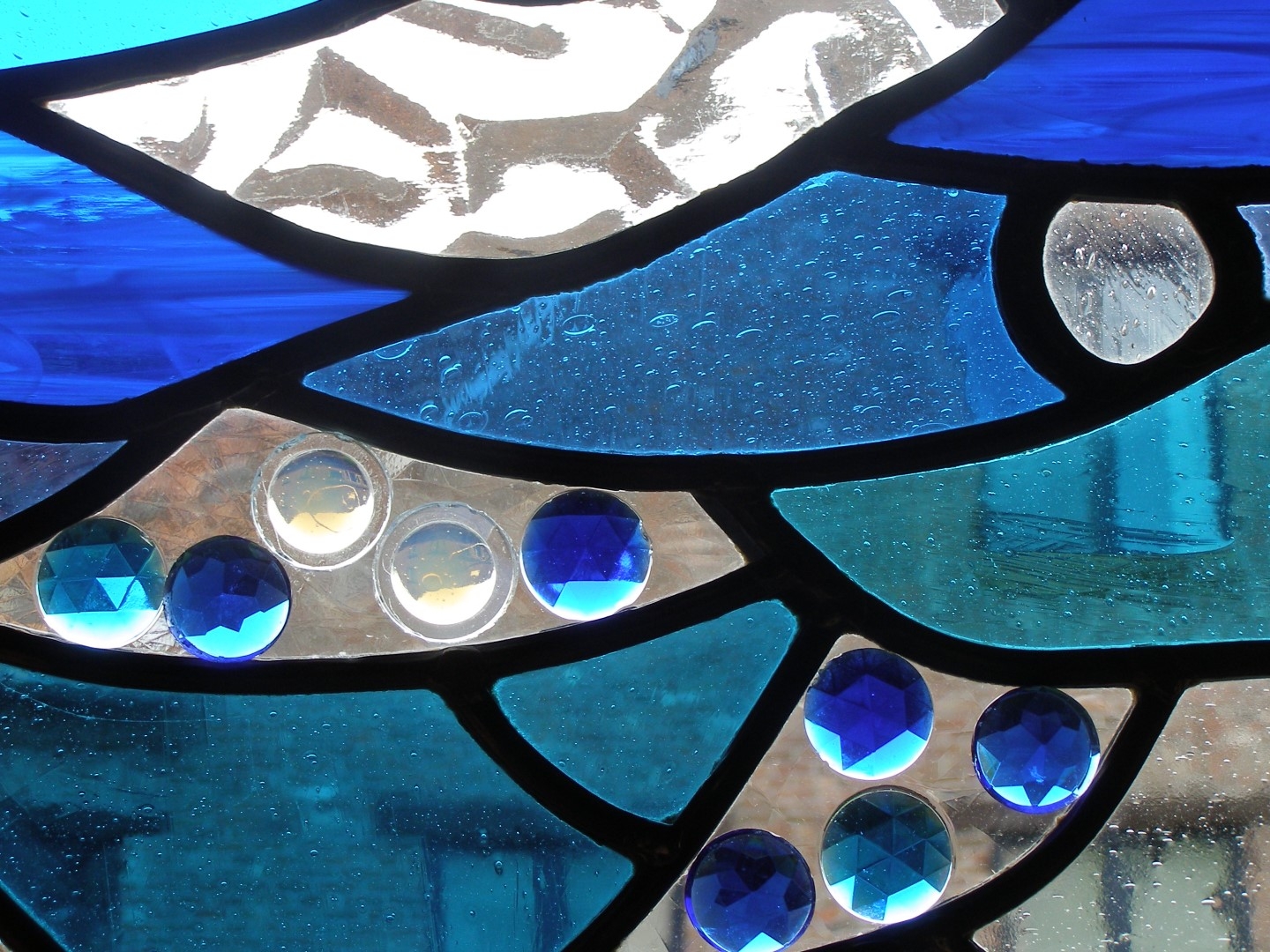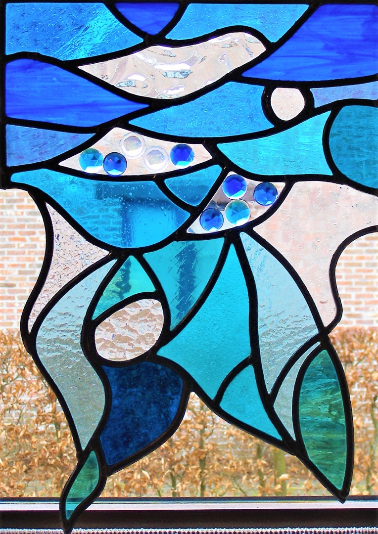 Gebruik van verschillende glassoorten: antiek mondgeblazen-,oceanique-, kathedraal- en gedrukt glas en ook bijoux.
